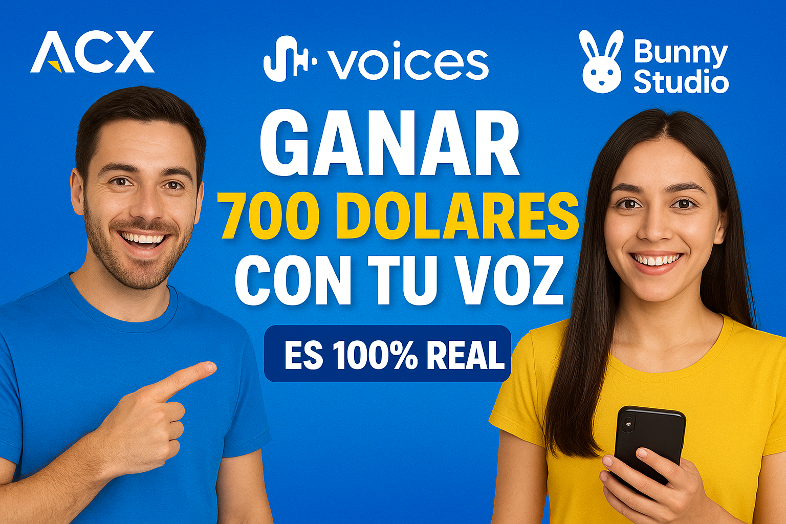 Lo mejor es que no necesitas invertir grandes sumas de dinero para empezar. Con un micrófono básico, un espacio silencioso y algo de práctica, puedes comenzar a construir una carrera freelance en el mundo de la voz. En este artículo descubrirás cómo es posible ganar hasta 700 dólares al mes (o más) con tu voz, explorando tres de las plataformas más reconocidas y confiables: ACX, Voices y Bunny Studio.