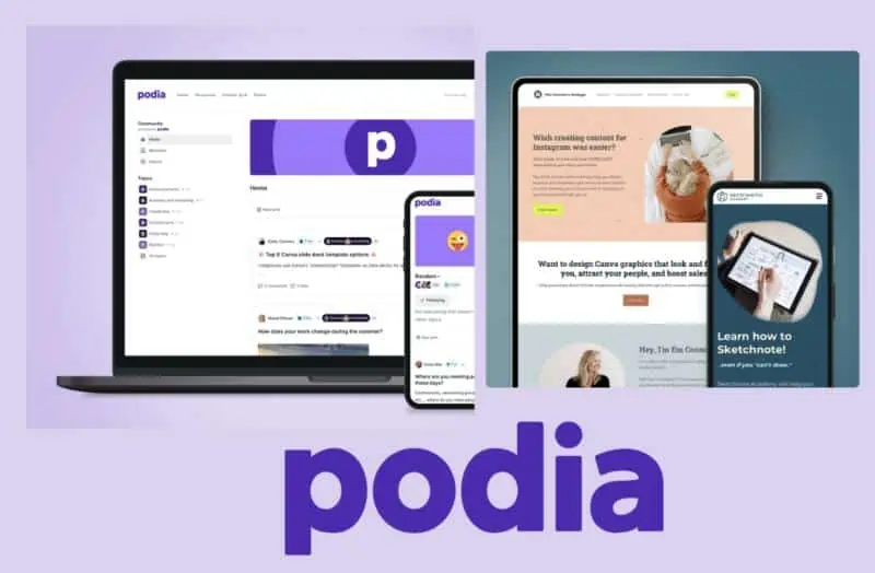 Podia es una plataforma todo-en-uno para: